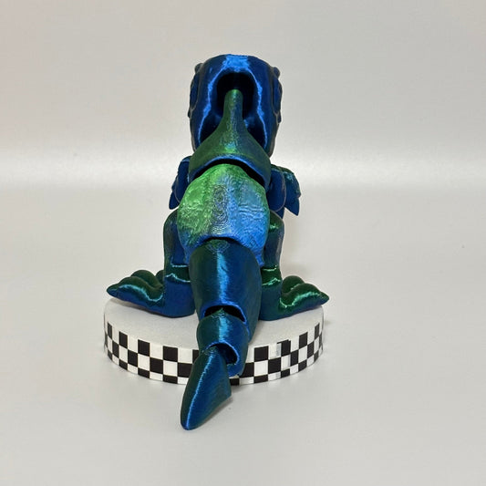 AquaChomp: Large Standing Silky Blue-Green T-Rex Fidget Collectible